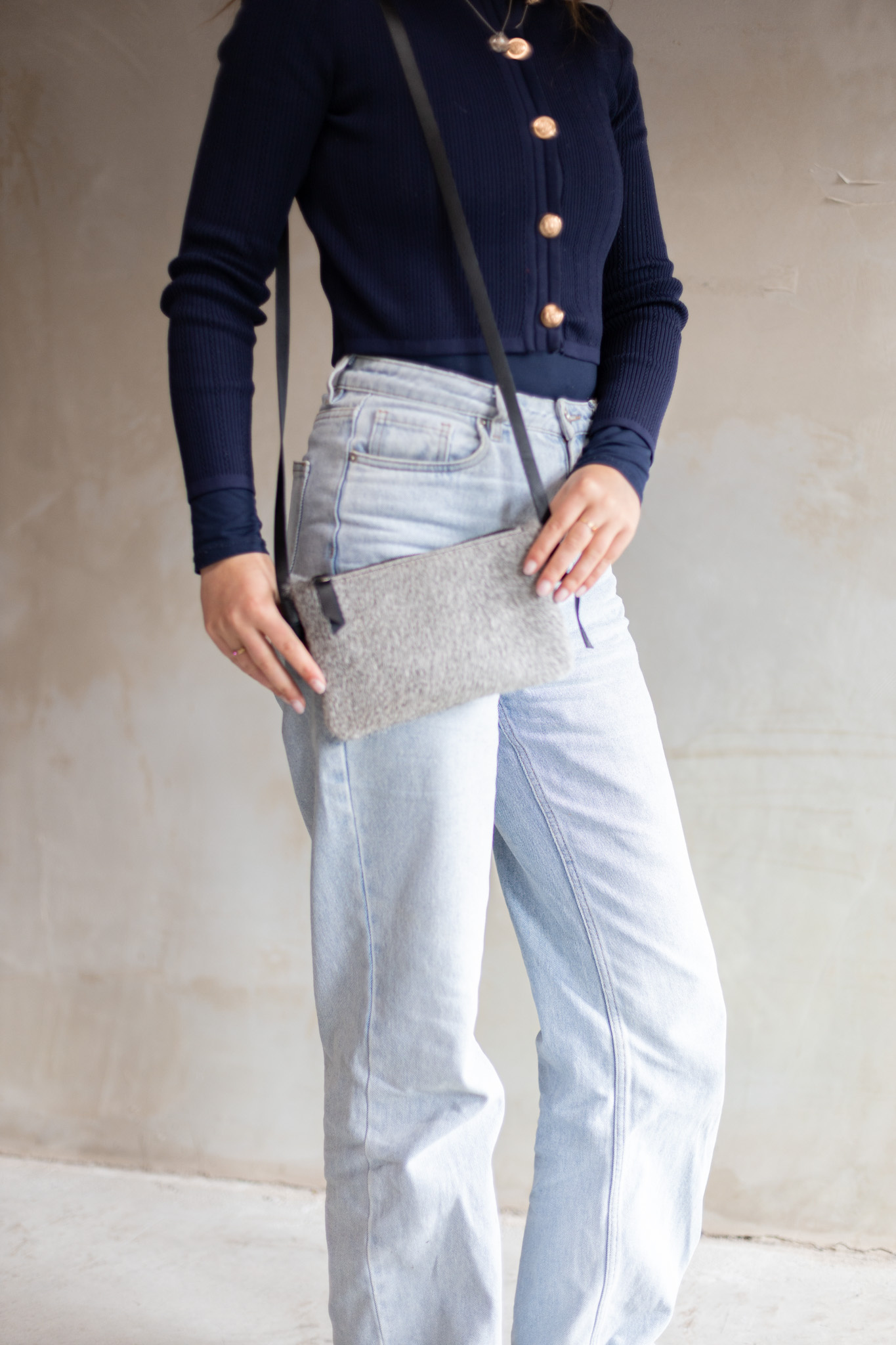 Die Tasche hat einen Reißverschluss und einen verstellbaren Crossbody-Gurt. Da der Gurt abnehmbar ist und die Tasche eine Handschlaufe hat, lässt sie sich ganz einfach in eine Clutch verwandeln. Ideal für einen Abend!Dank des nachhaltigen Materials und des zeitlosen Designs bleibt Ihre Tasche jahrelang schön und langlebig! Nachhaltig, fair und handgefertigt.