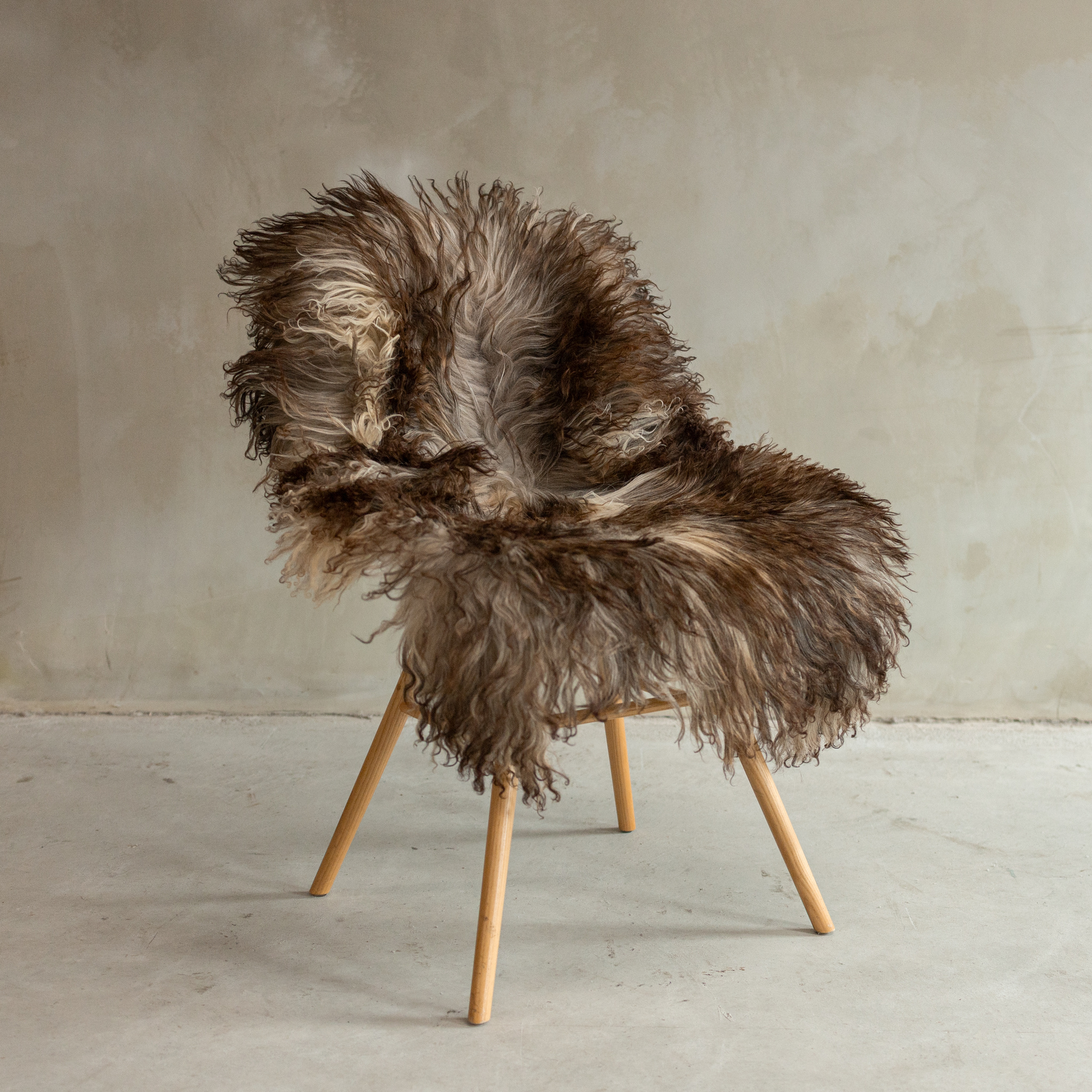 Entdecken Sie die einzigartige Textur der SVV-642, ein Krull-/Bergschaf Gemustertes Schafsfell von ca. 102x62cm. Die charakteristische Locke in der Wolle verleiht diesem Fell einen verspielten und eigenwilligen Charakter. Die gemusterten Farben verstärken den Tiefeneffekt der Locken.