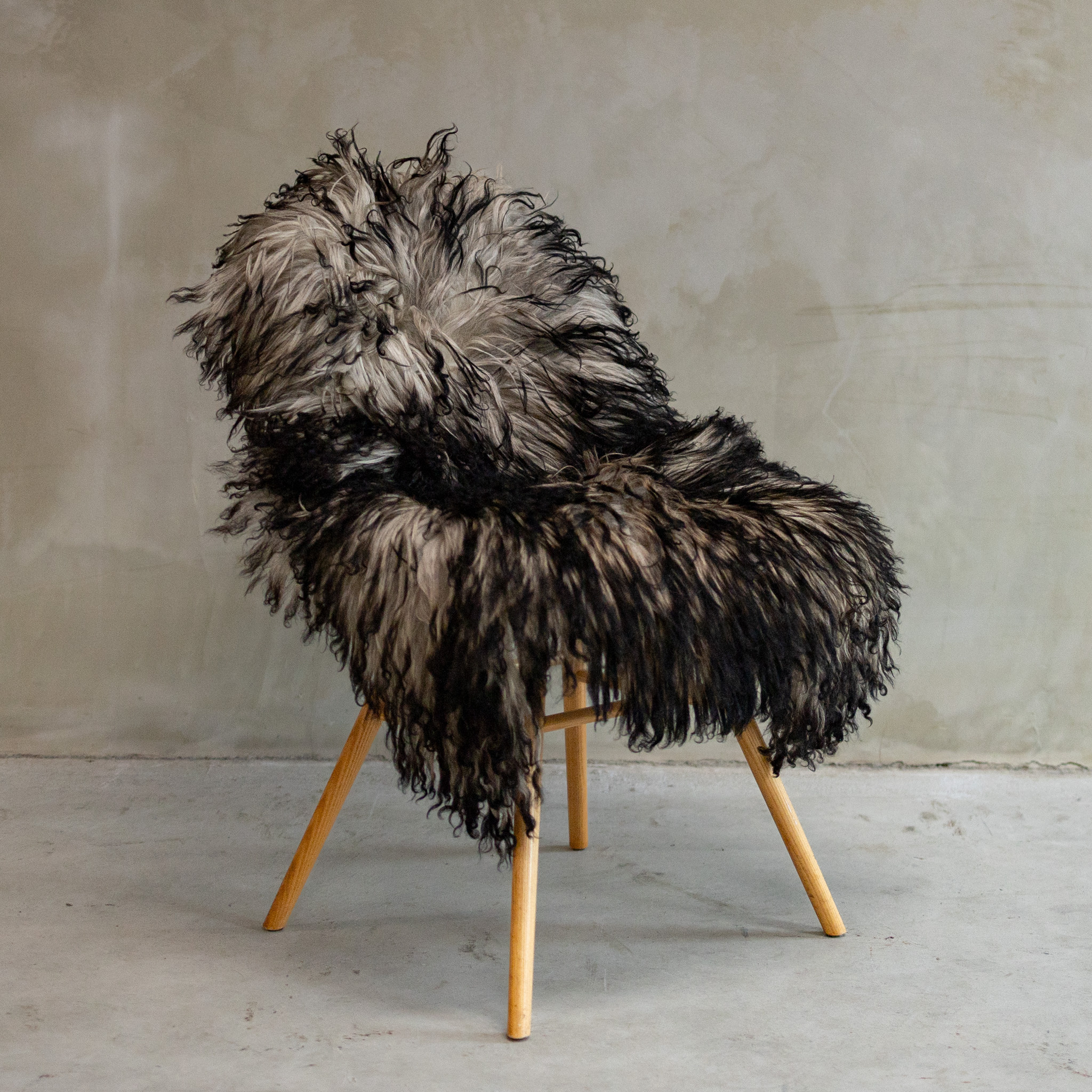 Die Wolle des SVV-610 ist besonders griffig und dennoch weich. Der natürliche Grauton passt perfekt zu Holzmöbeln oder modernen Beton-Looks. Ein langlebiges Fell mit starkem Charakter.