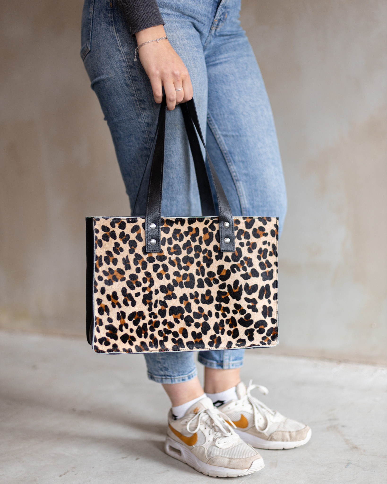 Eine schöne Handtasche darf in Ihrer Garderobe nicht fehlen. Diese Tasche ist aus hochwertigem Narbenleder und trendigem Rindsleder mit Print gefertigt. Perfekt für den Alltag – hier finden alle wichtigen Dinge Platz: Portemonnaie, Handy, Schlüssel, Ordner und Mittagessen. Auch ideal für die Arbeit! Karten und Schlüssel lassen sich sicher im verschließbaren Innenfach verstauen.