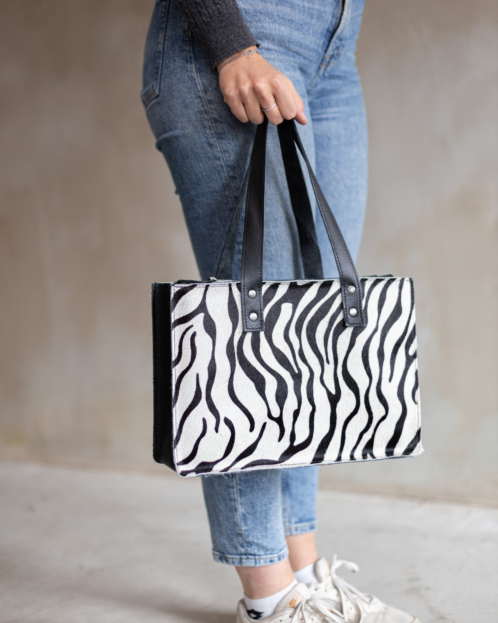 Eine schöne Handtasche darf in Ihrer Garderobe nicht fehlen. Diese Tasche ist aus hochwertigem Narbenleder und trendigem Rindsleder mit Print gefertigt. Perfekt für den Alltag – hier finden alle wichtigen Dinge Platz: Portemonnaie, Handy, Schlüssel, Ordner und Mittagessen. Auch ideal für die Arbeit! Karten und Schlüssel lassen sich sicher im verschließbaren Innenfach verstauen.