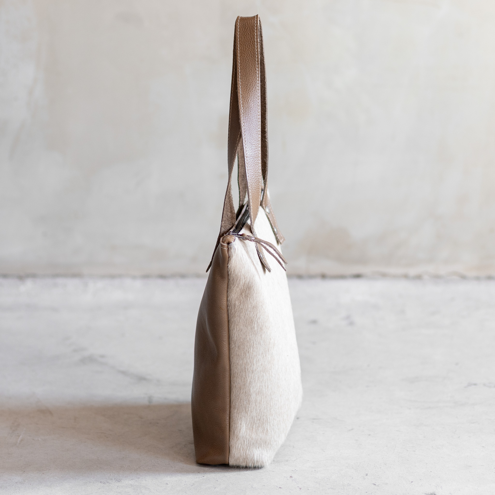 Die Tasche Karlijn ist eine zeitlose Handtasche aus hochwertigem Narbenleder. Die Vorderseite besteht aus Rindsleder mit Print.