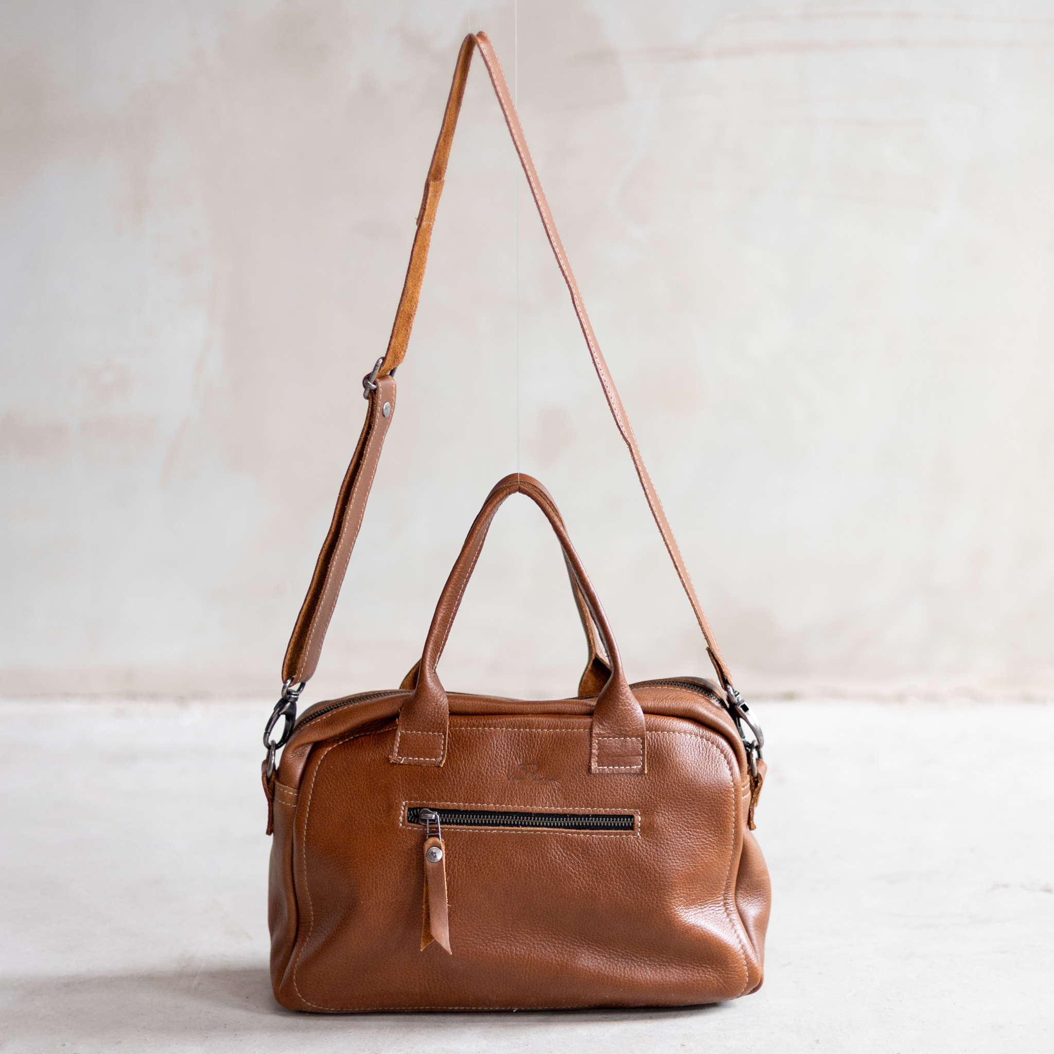 Die Tasche Milou ist eine coole Ledertasche für viele Anlässe. Dank des hochwertigen Narbenleders ist sie jahrelang haltbar.