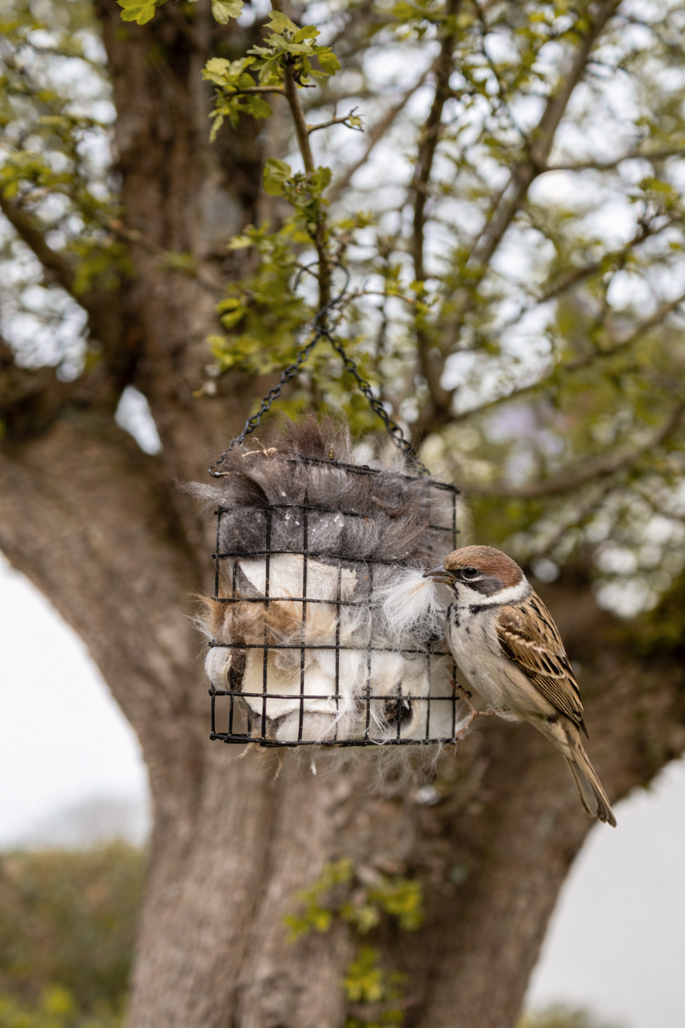 Was diesen Halter so attraktiv macht, ist, dass er Raum für verschiedene natürliche Materialien bietet. Neben Wolle oder Schaffell lassen sich auch Stroh oder kleines Schnittgut verwenden. So kannst du variieren, dich an die Jahreszeit anpassen oder nutzen, was du bereits zur Hand hast. Das macht den Halter nicht nur funktional, sondern auch vielseitig. Für Vogelliebhaber ist er eine schöne Möglichkeit, Garten oder Balkon noch lebendiger zu machen und dem Leben draußen wirklich etwas hinzuzufügen.