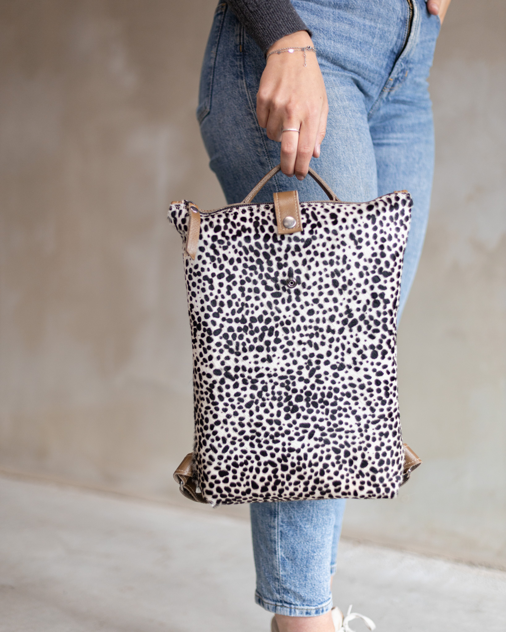 Der Sandra Rucksack ist die ideale Tasche für einen Tagesausflug! Dank seiner Größe ist er perfekt für den ganzen Tag. Sie können alle Ihre Alltagsgegenstände problemlos darin verstauen, ohne dass er zu groß oder zu schwer ist. Die Tasche besteht aus hochwertigem Narbenleder, kombiniert mit bedrucktem Rindsleder. Dank dieses nachhaltigen Materials ist die Tasche jahrelang haltbar. Der trendige Druck macht sie einzigartig!