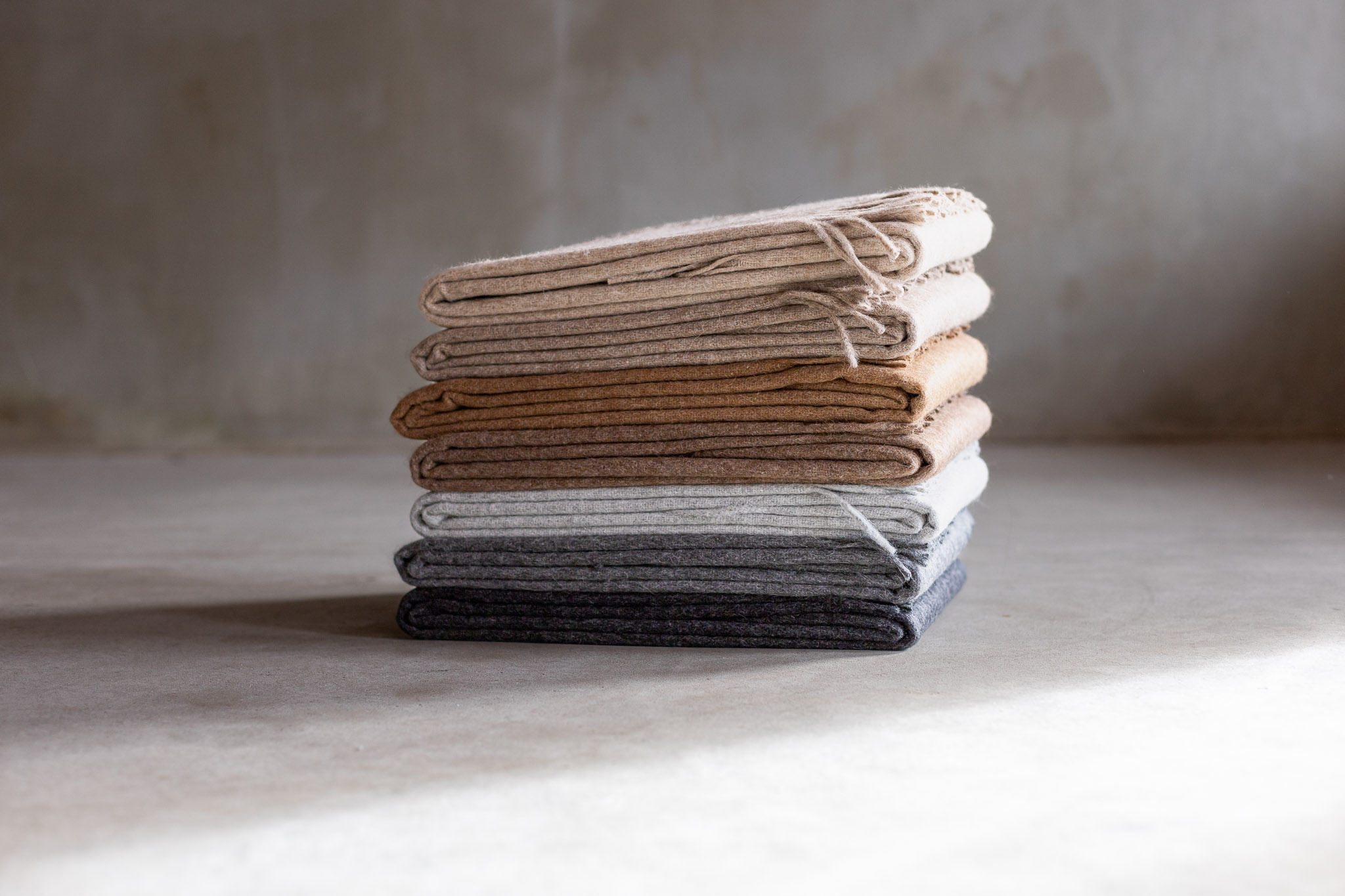 Die Plaids bestehen nicht ausschließlich aus Alpakawolle. Dies kommt der Qualität und Haltbarkeit des Plaids zugute. Zum Beispiel wurden Merinowolle und eine kleine Menge synthetischen Materials hinzugefügt, um das Filzen des Plaids zu verhindern, um es zu dehnen und die Flexibilität aufrechtzuerhalten.