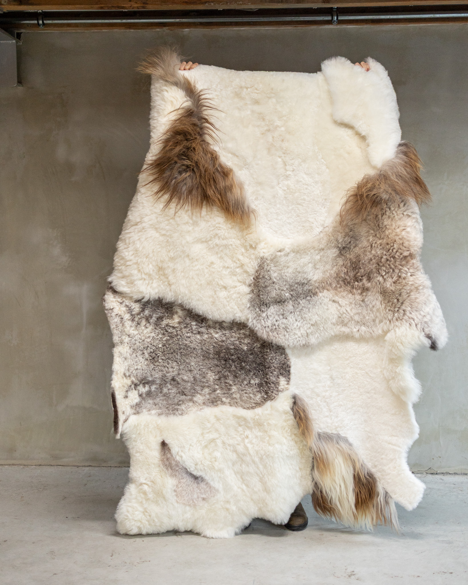 Die natürliche, helle Farbe der Felle in diesem Teppich sorgt für einen räumlichen Effekt und passt wunderbar zu sowohl hellen Interieurs im Scandi-Stil als auch zu dunklen, kontrastierenden Böden. Die dicke Struktur des 07SKK-113 ist nicht nur optisch beeindruckend, sondern bietet auch eine sehr weiche Unterlage. Es ist ein langlebiges Naturprodukt, das für eine zeitlose Eleganz sorgt.