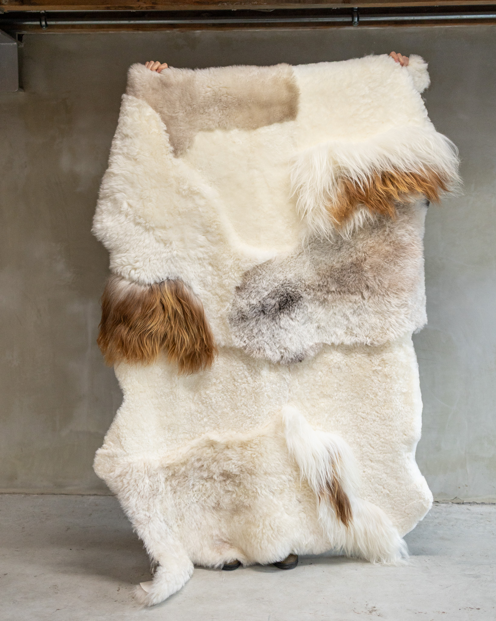 Die zusammengesetzten Lagen Schaffell im 07SKK-116 sorgen für einen federnden und extrem dicken Teppich. Die weichen, hellen Felle vermitteln ein Gefühl von Ruhe und Raum. Dieses Naturprodukt ist nicht nur eine Augenweide, sondern auch sehr praktisch aufgrund seiner isolierenden und dämpfenden Eigenschaften. Eine nachhaltige Anschaffung, die die Atmosphäre zu Hause bereichert.