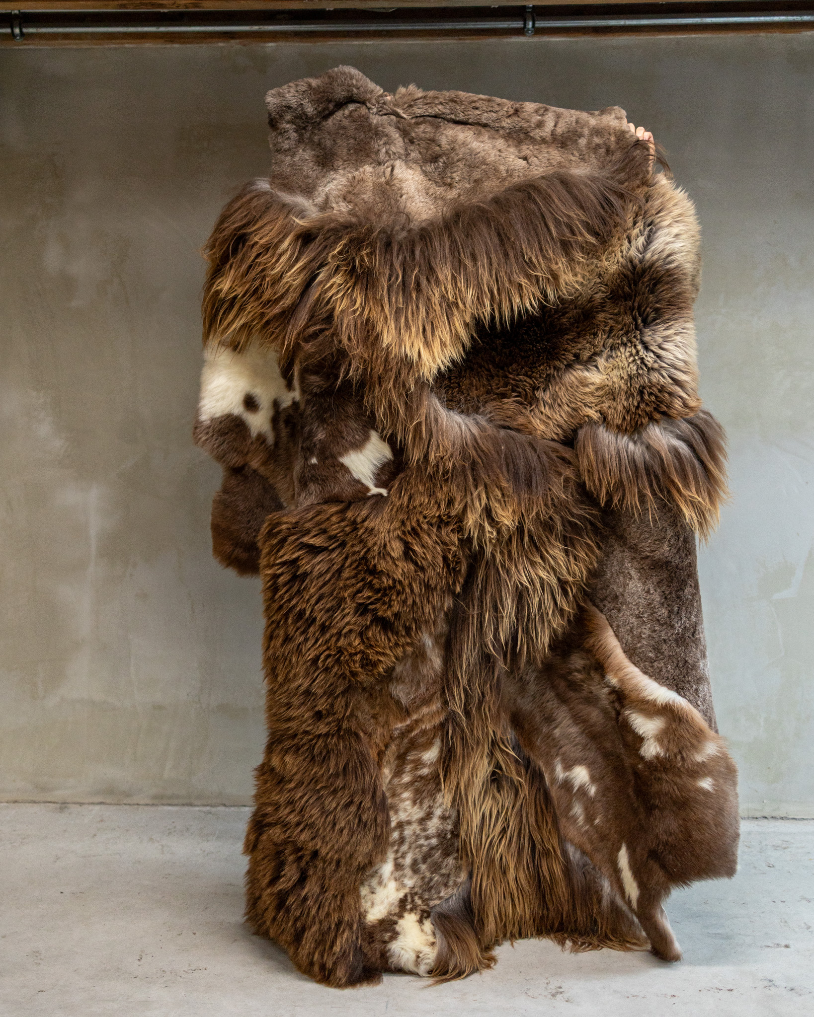 Die einzigartige Konstruktion aus mehreren Schaffellen garantiert, dass sich dieser Teppich außergewöhnlich voll und dick anfühlt. Dies macht ihn nicht nur zu einem Vergnügen zum Gehen, sondern erhöht auch die Akustik und den Isolationswert des Raumes. Der natürliche Braunton hat subtile Nuancen, die wunderbar mit Holz- und Ledermöbeln harmonieren. Dies ist eine nachhaltige Investition in Ihren Wohnkomfort.