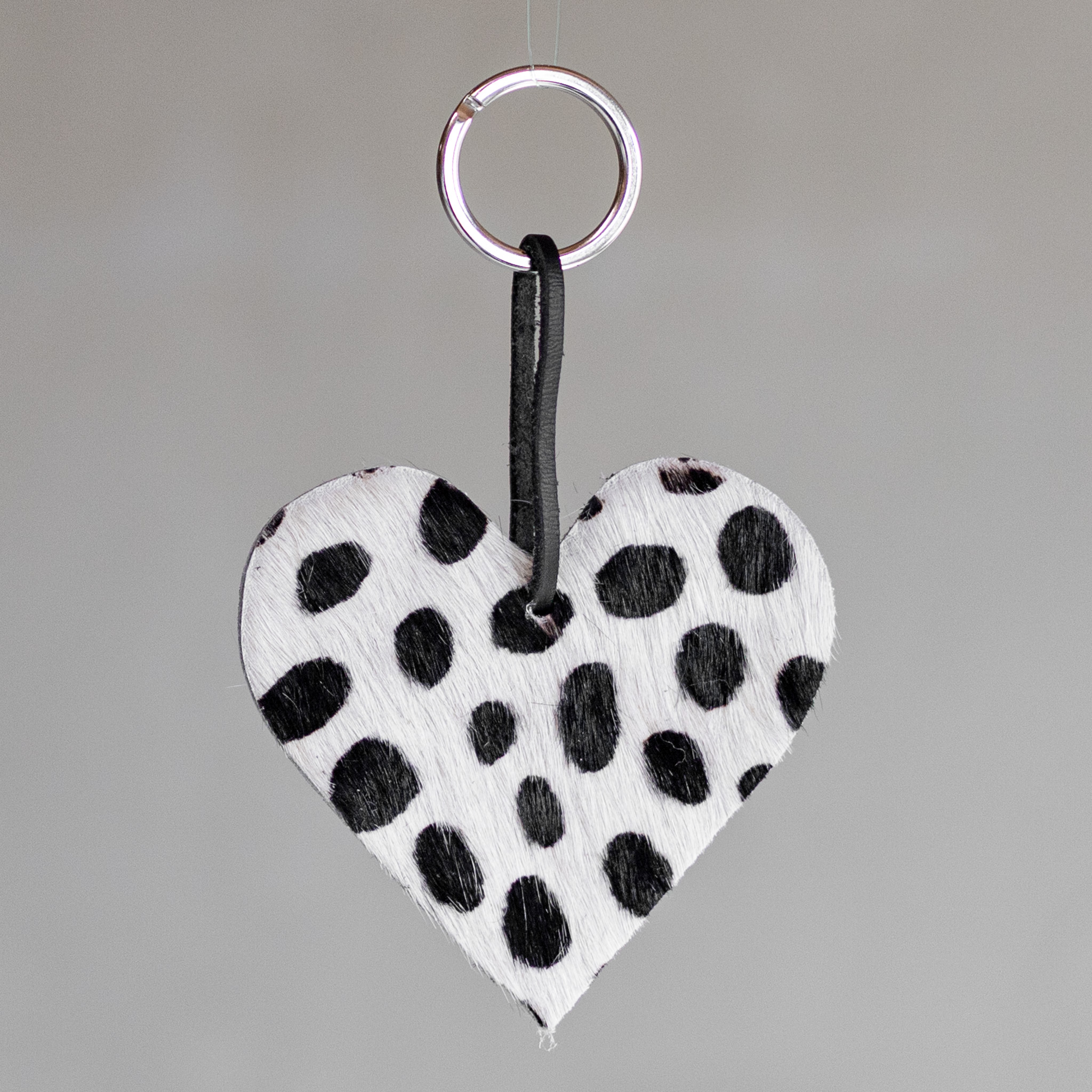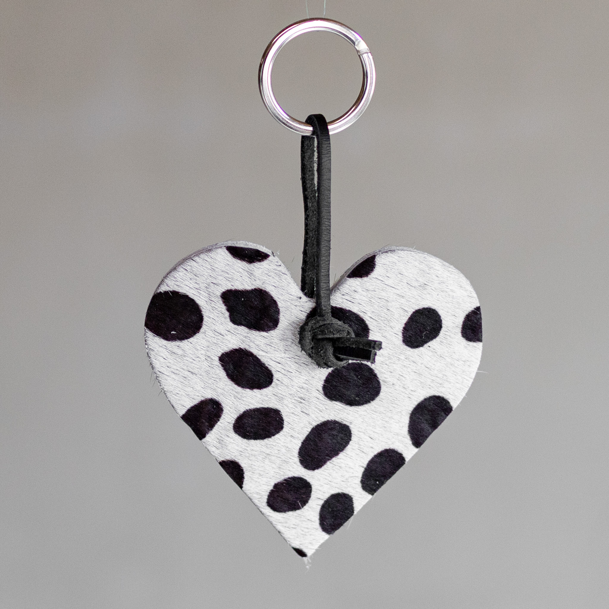 Süßer herzförmiger Schlüsselanhänger aus Rindsleder. Der Schlüsselring hat einen Schlüsselring und eine Lederschnur, um all Ihre Schlüssel auf stilvolle Weise zusammenzuhalten.