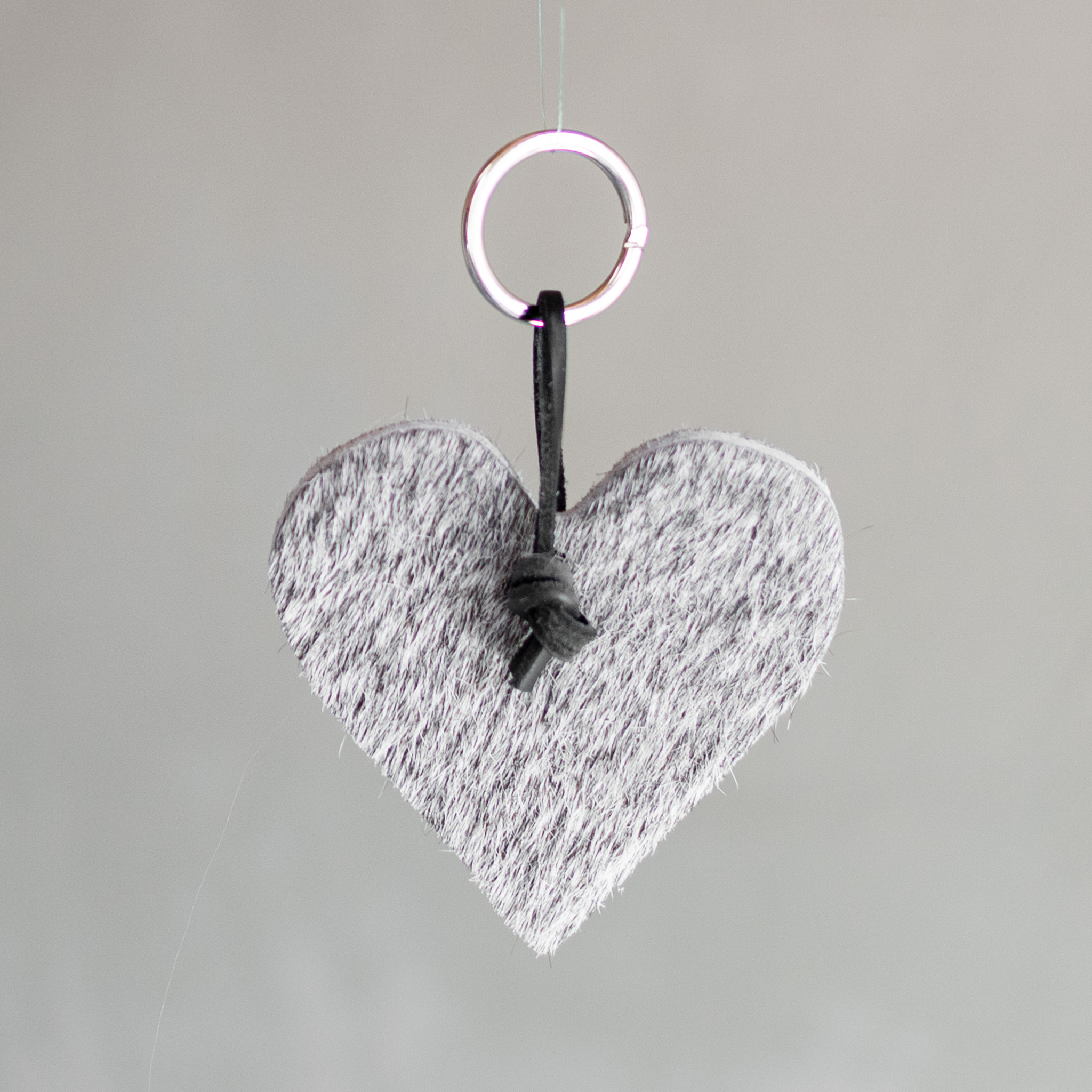 Süßer herzförmiger Schlüsselanhänger aus Rindsleder. Der Schlüsselring hat einen Schlüsselring und eine Lederschnur, um all Ihre Schlüssel auf stilvolle Weise zusammenzuhalten.