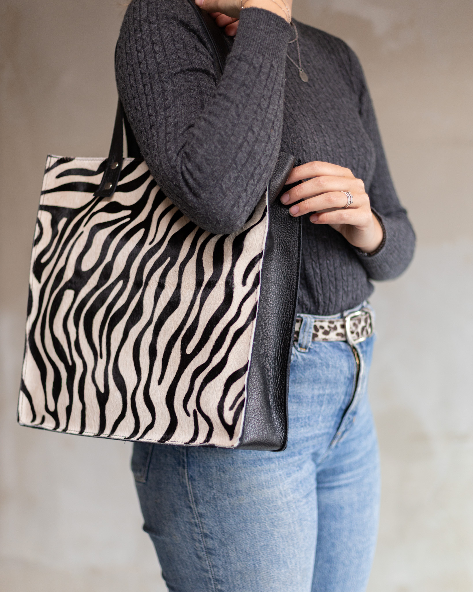 Ein geräumiger Shopper aus robustem Narbenleder. Ideal für Reisen, Arbeit und Studium! Tragen Sie ihn als Handtasche oder über der Schulter. Die Tasche kombiniert Leder mit bedrucktem Rindsleder. Dank ihres großen Formats finden alle wichtigen Dinge problemlos Platz: Portemonnaie, Handy, Schlüssel, Mittagessen und auch Ihr Laptop passt hinein! Perfekt für Arbeit und Alltag. Schlüssel und Karten lassen sich sicher im verschließbaren Innenfach verstauen.