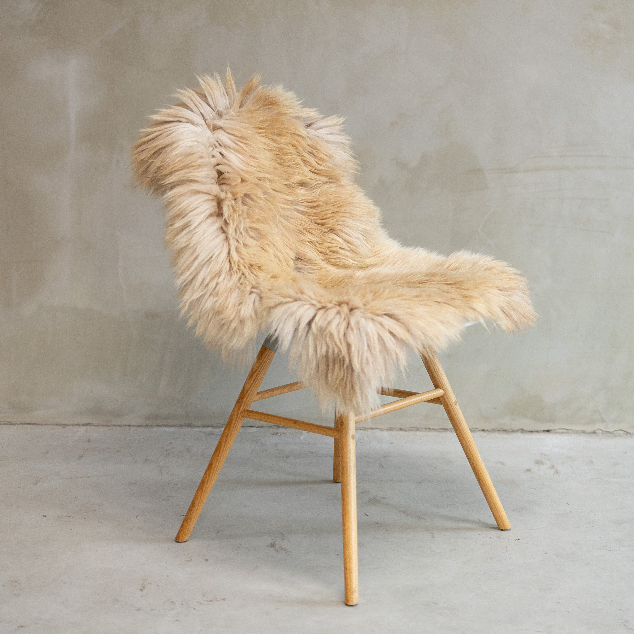 Mit der handlichen Größe von ca. 104x64cm ist dieses Fell perfekt, um es als luxuriöse Sitzfläche über einen Designstuhl, einen Hocker oder eine Couch zu verwenden. Die einzigartige Weichheit bereichert den Raum sofort. Dieses einzigartige SVV-552 Exemplar ist nur einmal erhältlich. Bestellen Sie jetzt das Solognote Schaffell.