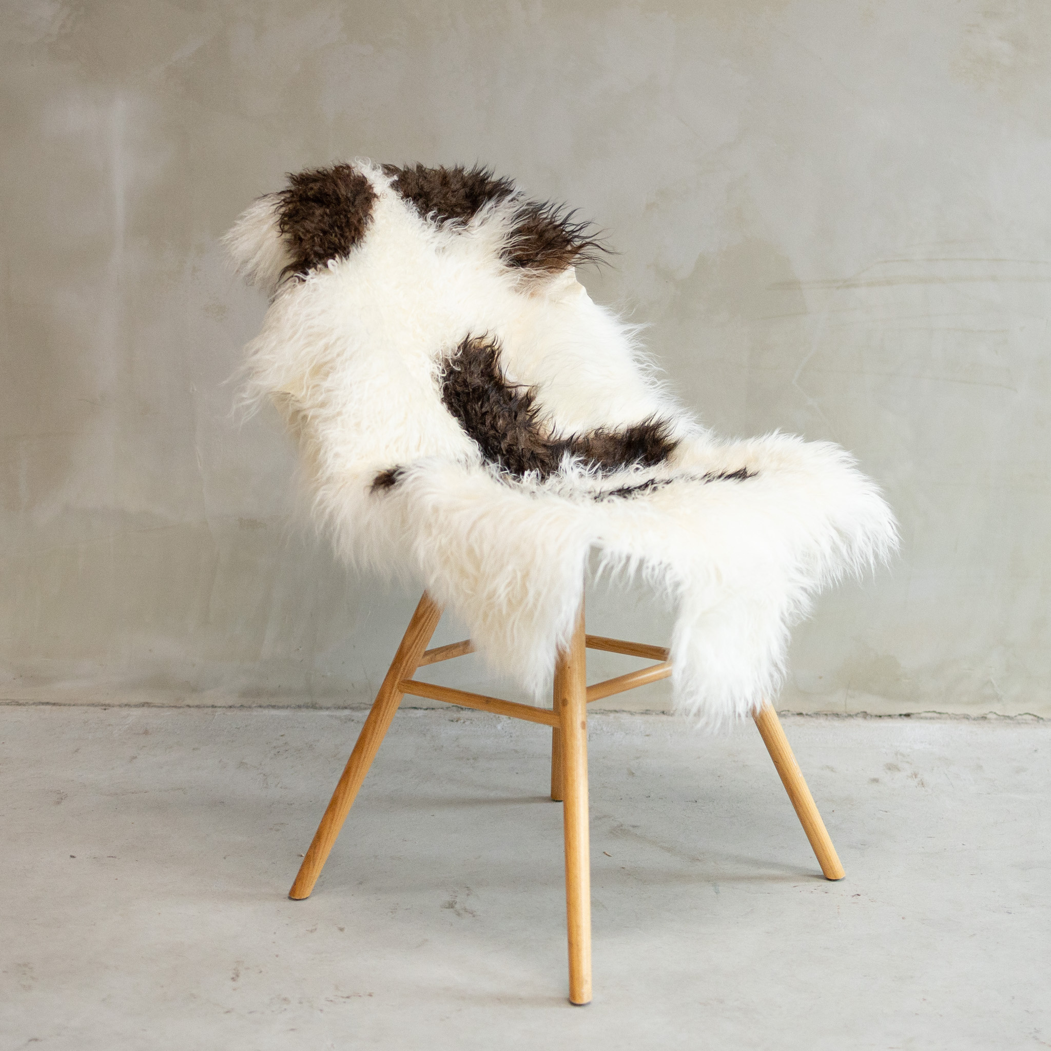 Das natürliche Bunt-Muster sorgt dafür, dass jedes SVV-577 Fell eine einzigartige Ausstrahlung hat. Die lange, lockige Wolle ist seidig weich und verleiht eine luxuriöse Ausstrahlung. Dies ist eine zeitlose und elegante Wahl.