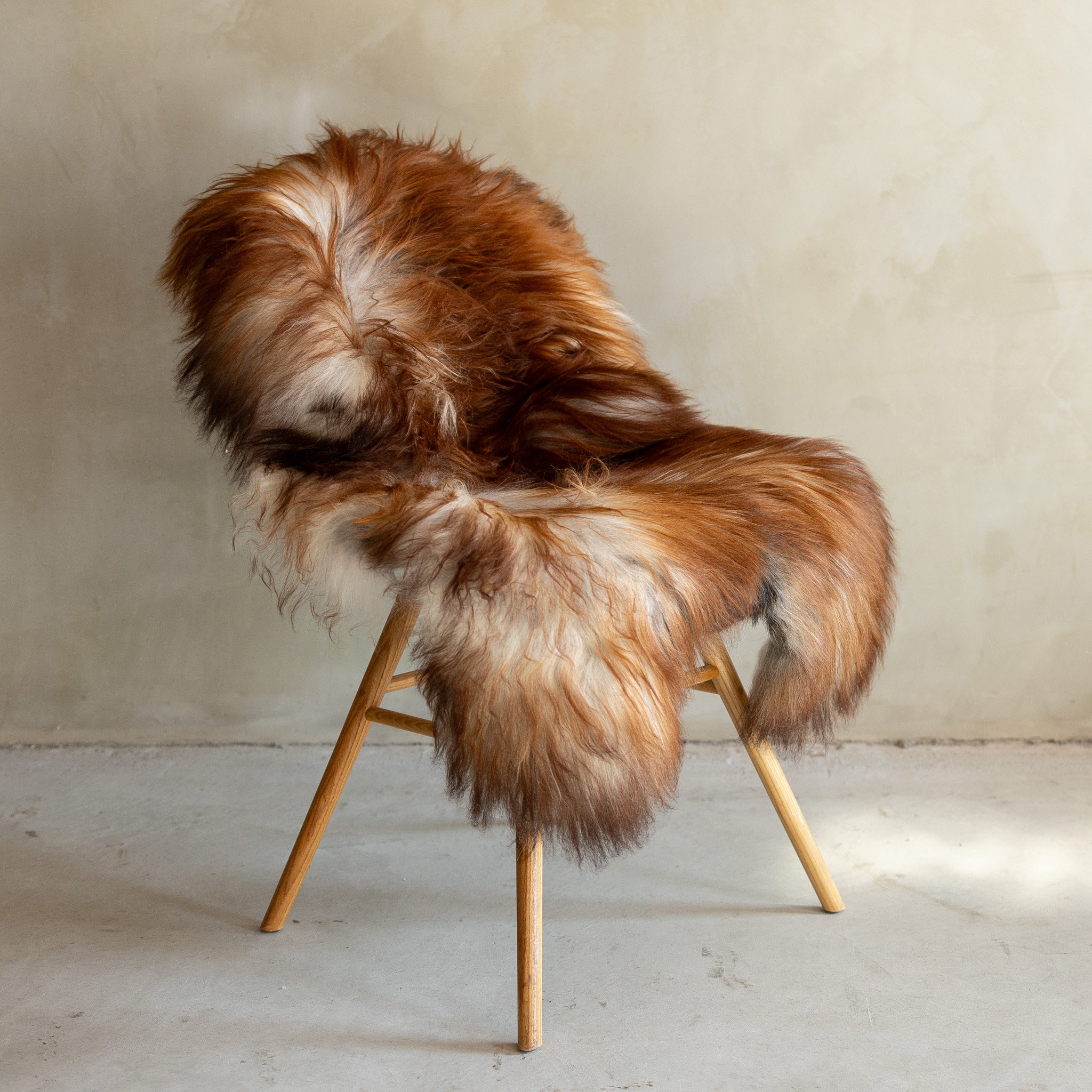 Da das Muster bei jedem bunten Fell unterschiedlich ist, wurde dieses Exemplar unter SKU SVV-685 einzeln fotografiert. Die gezeigten Bilder geben exakt das Fell wieder, das Sie erhalten. Form und Fall der langen Haare sind vorher vollständig ersichtlich, sodass die visuelle Übereinstimmung mit dem gelieferten Produkt garantiert ist. Dieses langlebige Naturprodukt behält seinen Wert durch die hochwertige isländische Wolle.