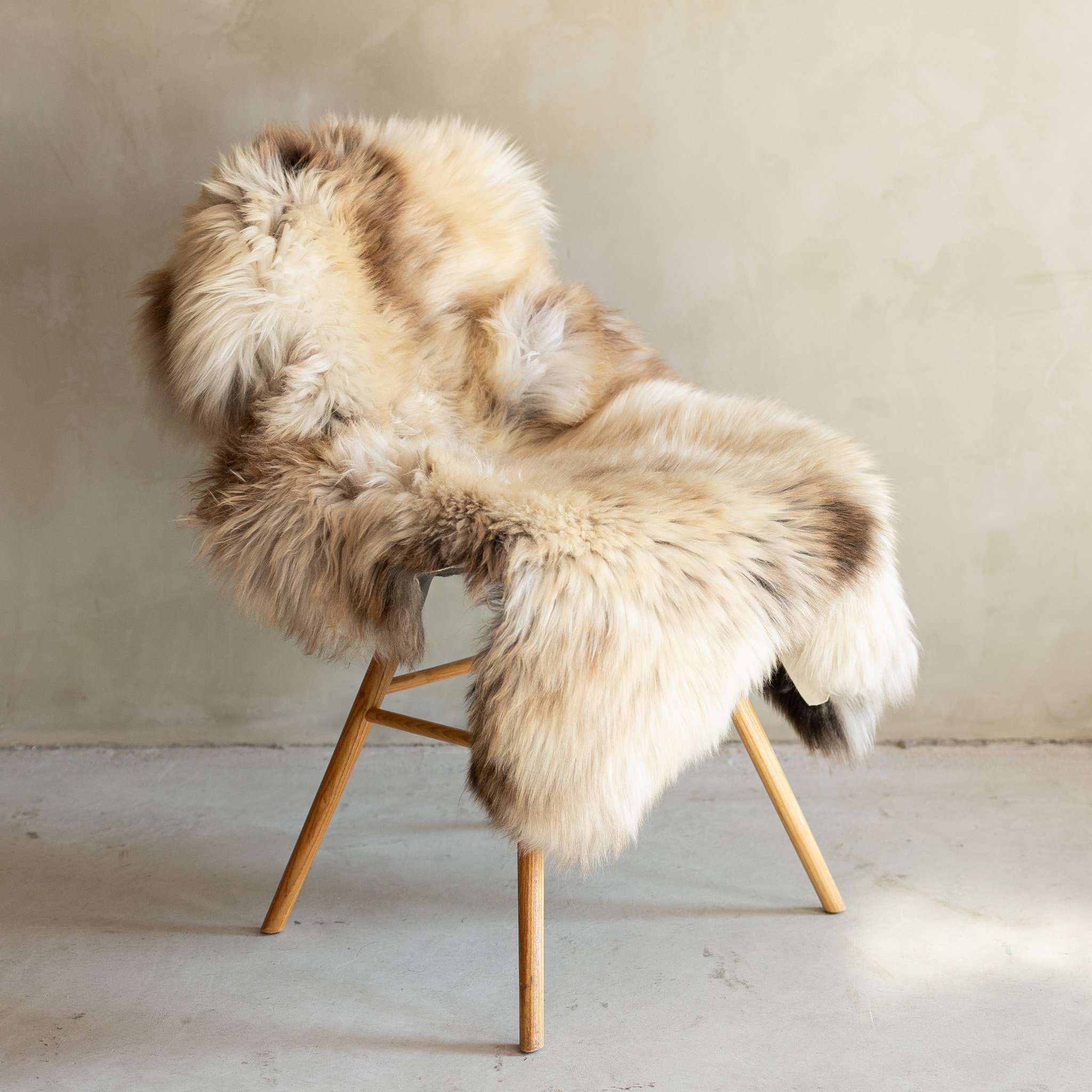 Meliertes Schaffell XXL, SKU SVV-718, 108x66 cm. Dieses Exemplar ist einzeln fotografiert; Sie erhalten genau das gezeigte Fell. Ein qualitativ hochwertiges Schaffell mit natürlicher Farbgebung, dichter Wollstruktur und optimalem Komfort für vielseitige Nutzung.