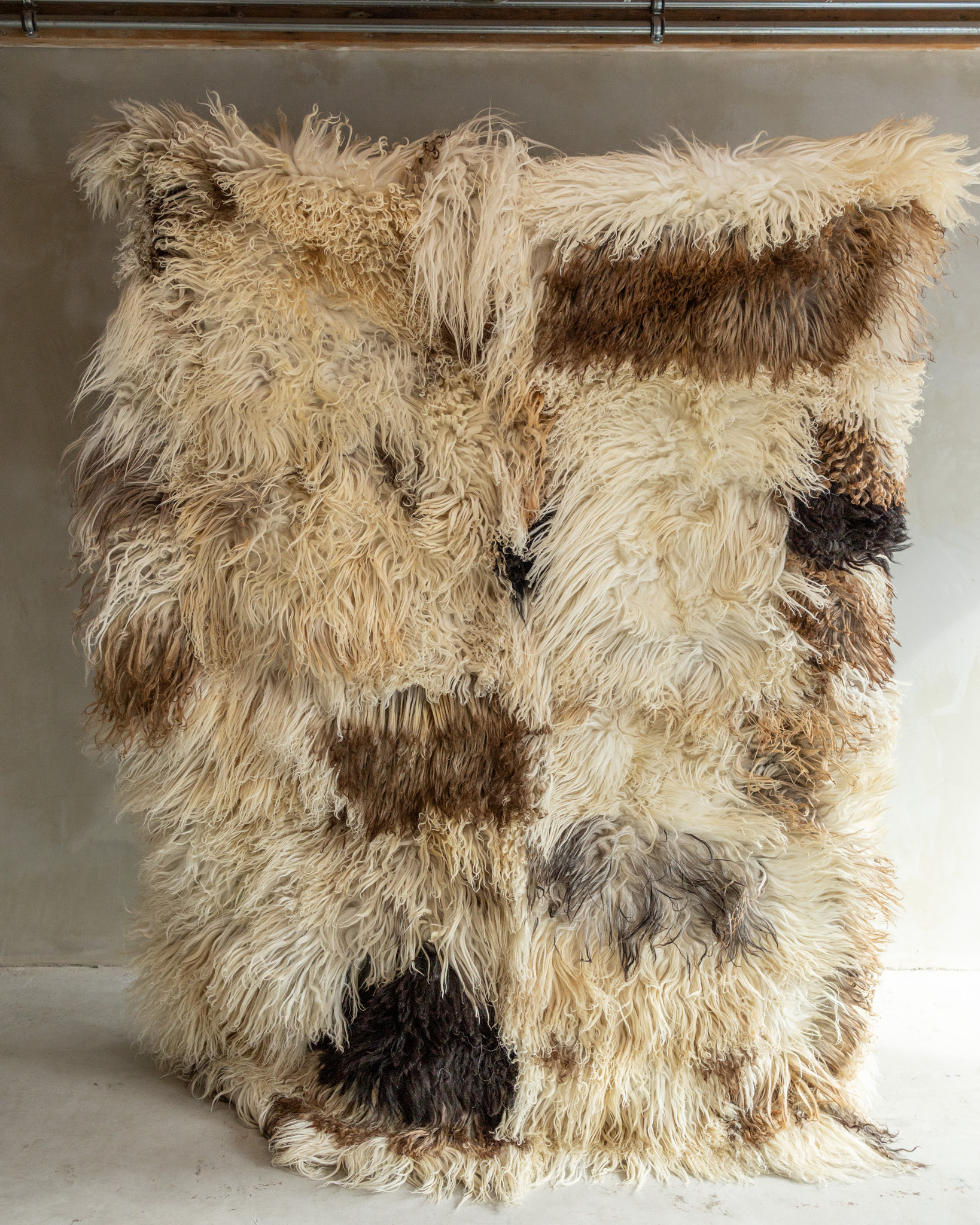 Der separat fotografierte (SKK-181) elegante Schaffell Teppich in der Größe 200x150 cm besteht aus lockigem Bergschaf und fühlt sich besonders weich an. Er bringt sofort Wärme und Gemütlichkeit in jeden Raum und sorgt für eine natürliche, stilvolle Atmosphäre.