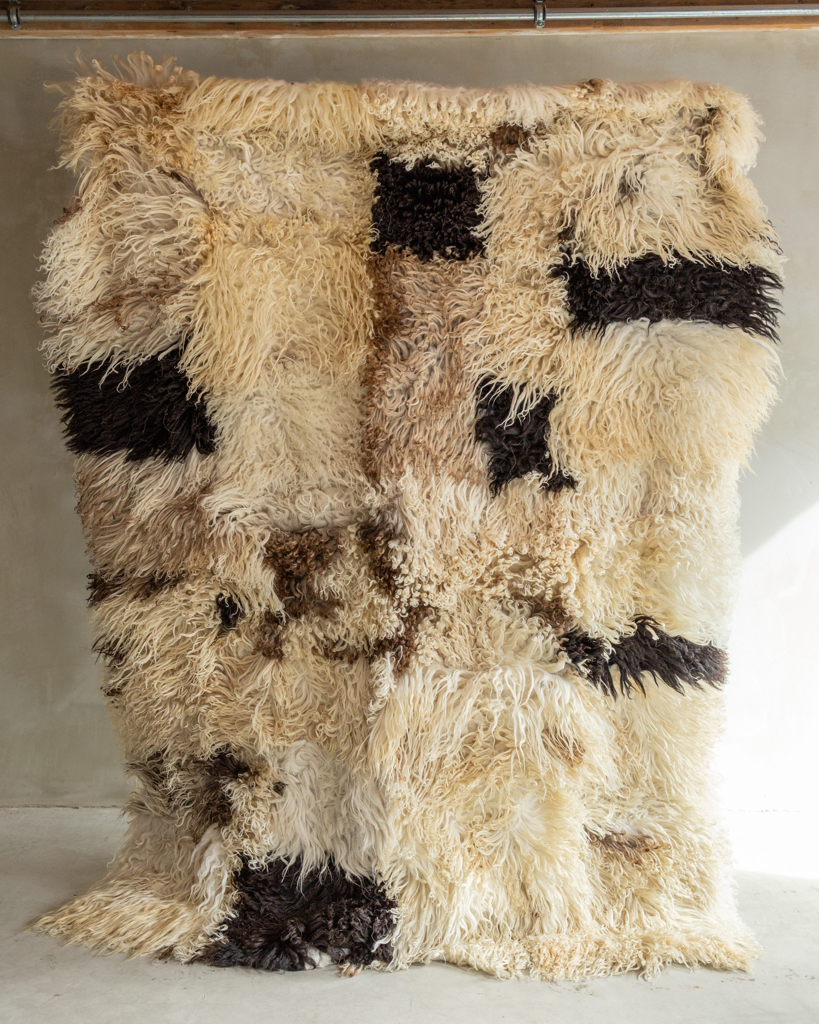 Der separat fotografierte (SKK-182) zeitlose Schaffell Teppich in der Größe 200x150 cm besteht aus lockigem Bergschaf und fühlt sich besonders weich an. Er bringt sofort Wärme und Gemütlichkeit in jeden Raum und sorgt für eine natürliche, stilvolle Atmosphäre.