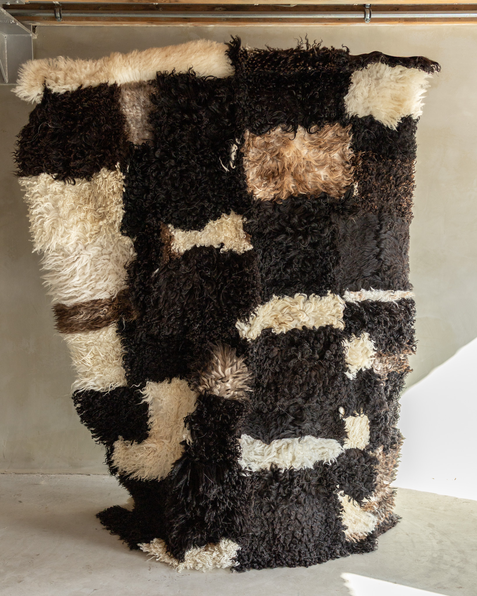 Der separat fotografierte (SKK-203) zeitlose Schaffell Teppich in der Größe 200x150 cm besteht aus lockigem Bergschaf und fühlt sich besonders weich an. Er bringt sofort Wärme und Gemütlichkeit in jeden Raum und sorgt für eine natürliche, stilvolle Atmosphäre.